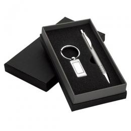 SET DE REGALO CON: LLAVERO METALICO RECTANGULAR Y PLUMA METALICA CON ORIFICIOS, INCLUYE ESTUCHE.