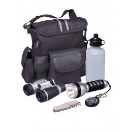 KIT PARA EXCURSION:BINOCULARES, NAVAJA, BRUJULA, VASO Y LINTERNA DE PLASTICO.