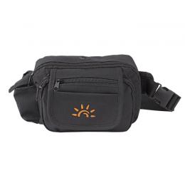 CANGURERA CON CUATRO COMPARTIMENTOS: BOLSA INTERIOR, BOLSA FRONTAL, SOLAPA CON VELCRO, BOLSA LATERAL, CORREA AJUSTABLE Y SEGURO DE PRESION.