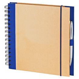LIBRETA ECOLOGICA CON 100 HOJAS, PORTA BOLIGRAFO Y CIERRE ELASTICO. INCLUYE PAGINA DE CONTACTOS IMPORTANTES Y CALENDARIO. 21.8 x 20.5cm