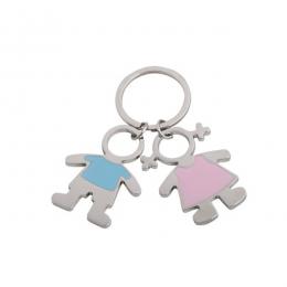LLAVERO METALICO ESMALTADO DOBLE EN FORMA DE NIÑO Y NIÑA