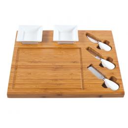 TABLA PARA QUESOS DE BAMBU.INCLUYE 2 TAZONES Y CUCHILLO, ESPATULA Y TENEDOR