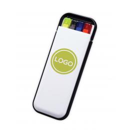 JUEGO DE ESCRITURA CON BOLIGRAFO TINTA AZUL, TINTA ROJA, LAPICERO Y MARCATEXTOS AMARILLO