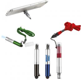BOLIGRAFO DE PLASTICO CON LUZ, GOMA TOUCH SCREEN Y SOPORTE PARA CELULAR