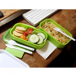 CONTENEDOR DE ALIMENTOS CON 2 COMPARTIMENTOS Y CUBIERTOS.